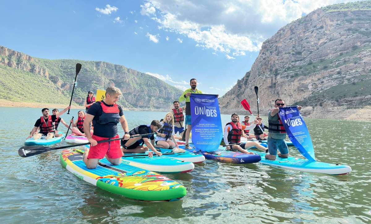 Üniversite Öğrenci Toplulukları İş Birliği ve Destek Programı (ÜNİDES) kapsamında hayata geçirilen “SUP ile Engel Tanımayan Gençlik” projesi çerçevesinde, gençlere Stand Up Paddle (SUP) ve kano sporlarına dair teorik eğitim verildi.